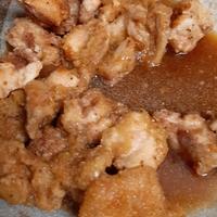 - 1 鶏肉は一口大に切り、塩コショウをまぶし片栗粉を付けたら、油で揚げます。