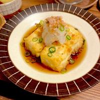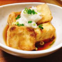 お酒のおつまみの定番、揚げだし豆腐のご紹介です。カラッと揚げた豆腐につゆがジュワっと染みて、たまらないおいしさですよ。めんつゆを使えば手軽に作れるので、あと一品欲しい時におすすめです。簡単なのでぜひ作ってみてくださいね。