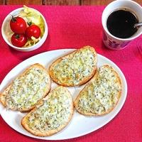 大葉をドライパセリ、粉チーズを細か目に刻んだピザ用チーズ、バゲットを全粒粉ドームパンで代用しました。