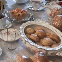 生クリーム200、薄力粉180、強力粉60、砂糖大さじ2、ベーキングパウダー7g、紅茶の葉を7gと少々分量を変えましたがとっても美味しかったです!
