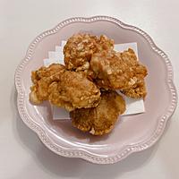 鶏もも肉を一口大に切ってから紅しょうがの汁大さじ3をもみ込み10分ほど浸けた。その後、汁気をザルで切りレシピ通りに作った。片栗粉が足りなかったので米粉を半分の20グラムを代用した。カリッと感がなかったので、やはり片栗粉が良いかと。