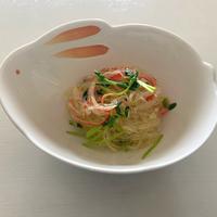 - 1 鍋にお湯を沸かして塩を入れ、春雨を規定の時間で茹でておきます。