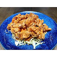- 2 1の鶏むね肉の水気を切り、片栗粉をまぶします。180℃に熱した揚げ油で4分程火が通るまで揚げます。