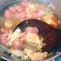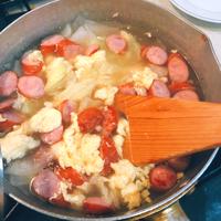 ニラの代わりにネギ。あとウインナーで旨味を出しました♩寒い日にぴったり。
