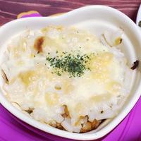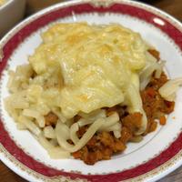 - 3 ココットに2のミートソース、うどん、スライスチーズの順に2回重ねて、オーブントースターで5分ほど焼きます。
