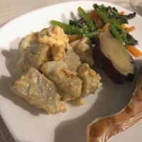 冷凍のサトイモを使ったけど、レンジでの加熱が足りなくて少し硬かった💦