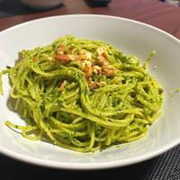 春菊とチーズがとっても風味良く、リッチな味わいのパスタです。ジェノベーゼといえばバジルで作るのが一般的ですが、春菊でアレンジしたソースもおいしいですよ。パスタ以外にも、旬の魚介をソテーしてかけたり、お肉のソースに使うのもオススメです。