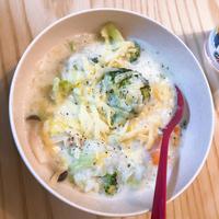 ベーコンの旨味と牛乳のコクが溶け合った、優しい味わいの粥です。冷やご飯でも美味しく作れ、具材はベーコンの他、玉ねぎやほうれん草、ウィンナーなど冷蔵庫の食材でアレンジ自在。とろけるスライスチーズを加えればコクが増して、グラタン風の濃厚な一品に。コンソメで味を調整すれば、滑らかな食感と相まって食欲のない時でもぺろりと食べられます。