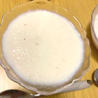 作り方は少しアレンジ。適当に切った玉ねぎとヒタヒタに浸かる程度の水と小さじ1/2を鍋に入れて柔らかくなるまで煮たら無塩バターを落としてハンドブレンダーでペースト状にして牛乳を投入。コンソメ・胡椒は使わずシンプルに✨