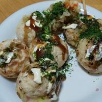 見た目はたこ焼きと同じですが、生地に片栗粉を混ぜてるので弾力があります。たこ焼きよりは早く焼き上がります。間違えてソースとマヨネーズをかけてしまいましたが、次に挑戦するときはポン酢にします。