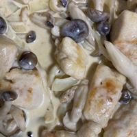 有り合わせのキノコで、最後のレモンで爽やかに生クリームが軽くなる感じ、お店で食べるような美味しさ、赤ワインにもピッタリ、リピートします‼️