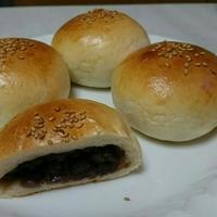 レシピにアレンジしてオーソドックスなあんパンにしてみました。こしあんが苦手なのでつぶあんです。茹でる以外はレンジでチンで出来てしまう簡単つぶあんを作って、生地は3次発酵までさせます。手にベタベタくっつくくらいの生地で、冷えた時に固くならないようにほとんど打ち粉は使いません。