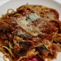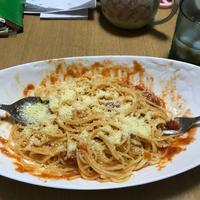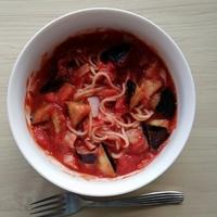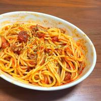 トマトソースのみレンジ調理。豚コマと玉ねぎで。トマト缶が200mlしかなかったのですが調味料はそのままで問題なく、すごく簡単で美味しかったです。