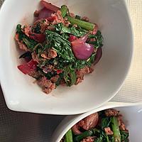牛肉を豚挽肉。ビーツ+。わさび菜はサラダで食べてましたが炒めても美味しいですね。ありがと〜クラシルさん。。