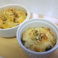 - 8 ココットに半量ずつ入れ、1をかけてオーブントースターで焼き色がつくまで5分程焼きます。