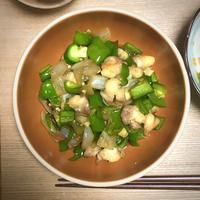 ピーマン4個、小ぶりなパプリカ1個、玉ねぎ1/4個と少し で作りました。