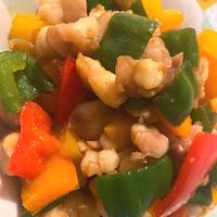 赤、黄色パプリカとピーマンと鶏肉がとてもよくあってとても美味しかったです!簡単に出来て良かったです!