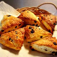 質問欄からチョコ生地の作り方を参照して、チョコ生地にチョコチップのスコーンを作りました☺️