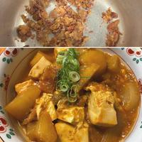- 4 大根が柔らかくなったら、木綿豆腐を加えて蓋をして汁気が半分くらいになるまで中火で煮ます。