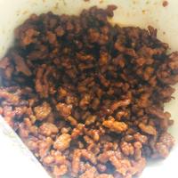 - 1 フライパンにサラダ油を熱し豚ひき肉を入れ色が変わるまで炒めます。