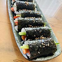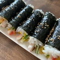 酢飯でなくて美味しの?って思いましたが、胡麻油の香りで思ったよりずっと美味しくハマりました。コマキンパはちょいと巻けて御手軽です♫