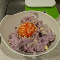 紫色のシャドークイーンで作ってみました。つぶしていたら、結構粘りが出ました。生クリームと卵黄でちょうどいい感じになりました。