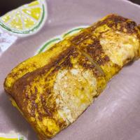 - 3 卵が半熟状になるまで混ぜ、奥から手前に巻きます。