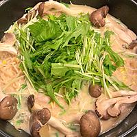 - 4 大根と豚肉に火が通ったら1を入れ、水菜を乗せ、白すりごまをかけて完成です。