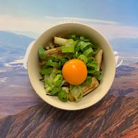 すき焼きのとろっと甘い長ねぎだけを丼にした一品です。長ねぎを甘辛く味付けし、仕上げにシャキシャキの刻んだ長ねぎと卵黄をトッピングしました。卵黄を崩して食べると、まさにすき焼きのような味わいです。少ない材料で簡単に作れるので、ぜひお試しくださいね。