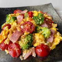卵に牛乳を加えることでふわふわ食感を実現。ブロッコリーはレンジで下処理するので手軽に作れます。味付けは驚くほどシンプルにポン酢だけですが、トマトの自然な酸味が加わり、ベーコンやエリンギを加えると旨みと食感がアップ。彩り鮮やかな一品で食卓が華やかに。ポン酢の爽やかな風味と半熟卵のコクが絶妙なバランスで、暑い季節にぴったりの副菜として好評です。