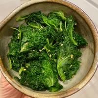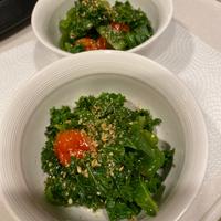 定期的に届くケールをどう食べたら良いのか悩んで、いつもこのナムルにたどり着きます。簡単でたくさん食べられるのでおすすめ。ケールだけだと苦いので今回ミニトマトとピーマン一個を別で1分レンチンして和えました。