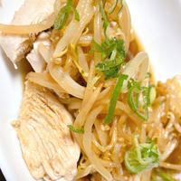 ネギがなかったので、シャキシャキ感が欲しくて、軽く炒めて同じタレを少しかけたもやしを載せました!あとカットされてる青ネギはあったので彩的な意味で載せました…