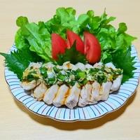 むね肉は調味液に30分ほど浸したら生姜と長ネギの青いところと共に水を張った鍋にいれ、沸騰したら弱火で10分位茹でてから冷ましています。これでムラなくしっとり。