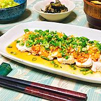 - 7 お皿に大葉を敷き、5を盛り付け、6をかけて完成です。