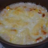 ごはんを薄く敷いてドリアにして食べました✨夫がこれまで食べたドリアの中で一番おいしい!と絶賛してくれました☺️えびとコーンがよく合います!また作ります〜!