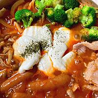 創味シャンタンって、中華のイメージが強かったけど、トマトとの相性もとても良く、チーズのコクと豚肉と野菜の旨みで大満足!