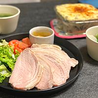 しっとりとした食感と柔らかさが特徴的な一品です。豚肉は肩ロースやロース、ヒレ肉など様々な部位で作れますが、塩だけのシンプルな味付けでも十分美味しく仕上がります。仕上げに添えるハチミツ入りマスタードソースとの相性は抜群で、高級ハムのような上品な味わいを楽しめます。お好みでハーブを加えたり、和辛子を添えたりするのもおすすめです。冷麺のトッピングとしても活躍する万能メニューです。