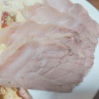 アメリカンポークのロース1キロを120℃のオーブンで80分蒸し焼きで作りました。高級ハムのような仕上がりになりました。そのまま食べても美味しかったけどソースも美味しかったです。冷麺のトッピングにも合います。