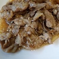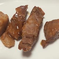 - 4 豚肩ロースに両面こんがりと焼き色がつき、火が通ってきたら、調味料を加え、味が馴染むまで中火で2分程炒め、火から下ろします。