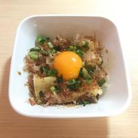 - 3 器に盛り付け、トッピングをのせ、めんつゆをかけて完成です。