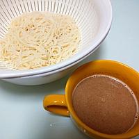 - 4 別の鍋にお湯を沸騰させ、そうめんをパッケージの表記通りにゆで、お湯を切ります。流水にさらして水気を切ります。
