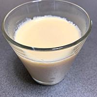 - 3 小鍋に杏仁霜とグラニュー糖を入れ、調製豆乳を2回に分け入れ、都度泡立て器で混ぜ合わせます。