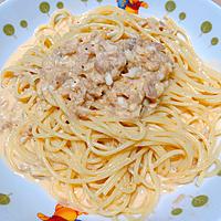 濃厚で美味しかったです!ソースも合えるだけなので簡単。と思いきや粉チーズを切らしてしまい、ピザ用チーズを溶かすために結局フライパンを使う羽目になりました。火を入れたらツナがものすごい匂いに...。