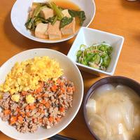 牛のそぼろだったので、油がめちゃくちゃ出て処理が大変でした……。味はしょっぱめでおかずになりました☺️