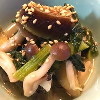 白いご飯によく合うナスと小松菜の炒め物のご紹介です。ごま油でじっくり炒めたナスは甘みが増し、味噌との相性が抜群です。お箸が進み、パクパク食べたくなる一品です。トッピングはお好みですりゴマに代えても美味しくいただけます。ぜひ、作ってみてくださいね。