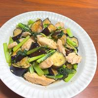 ナスは全面に油を吸わせながら、お箸で転がすように炒めます。全体に焼き色がつくまでじっくり加熱することで、甘くてジューシーなナスになります。 小松菜は強火で手早く炒めることでシャキッとした食感を保つことができます。