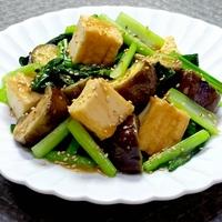 「ナスと小松菜の味噌炒め」の作り方を簡単で分かりやすいレシピ動画で紹介しています。