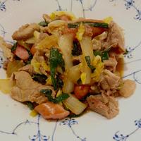 鶏もも肉、ピーマン、玉ねぎ、キャベツで作りました!