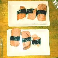 うずらの卵で 型抜きポークランチョンミートにぎり レシピ・作り方