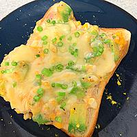 明太子なしで。アボカド1/2、ゆで卵1個、マヨネーズ、レモン汁、塩コショウにスライスチーズをトッピングして♪朝ごはんの定番化決定です!用意できたときには、明太子やたらこで作りたいです!茹で卵1個で二人分ですくないかと思いましたが、ちょうどよかったです♪2021.4.29